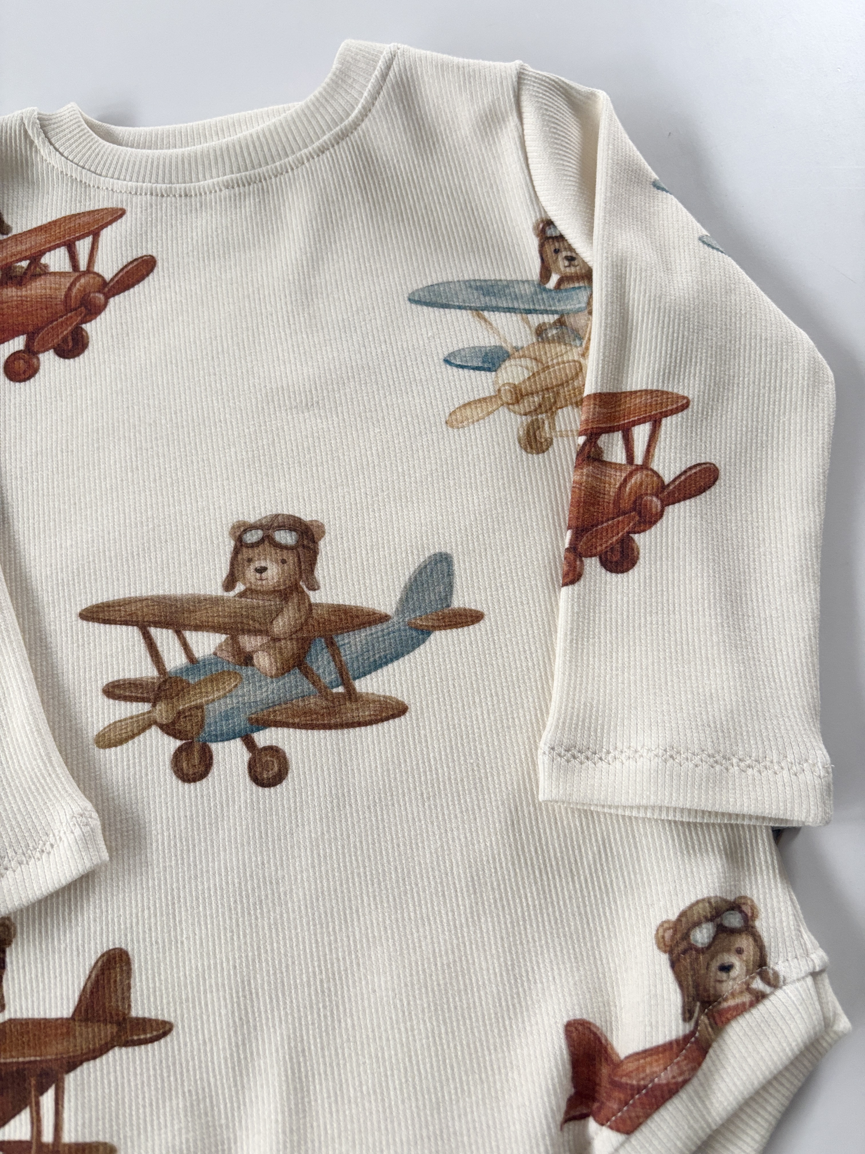 Komplet bluza ecru bird+legginsy prążkowane classic beżowe