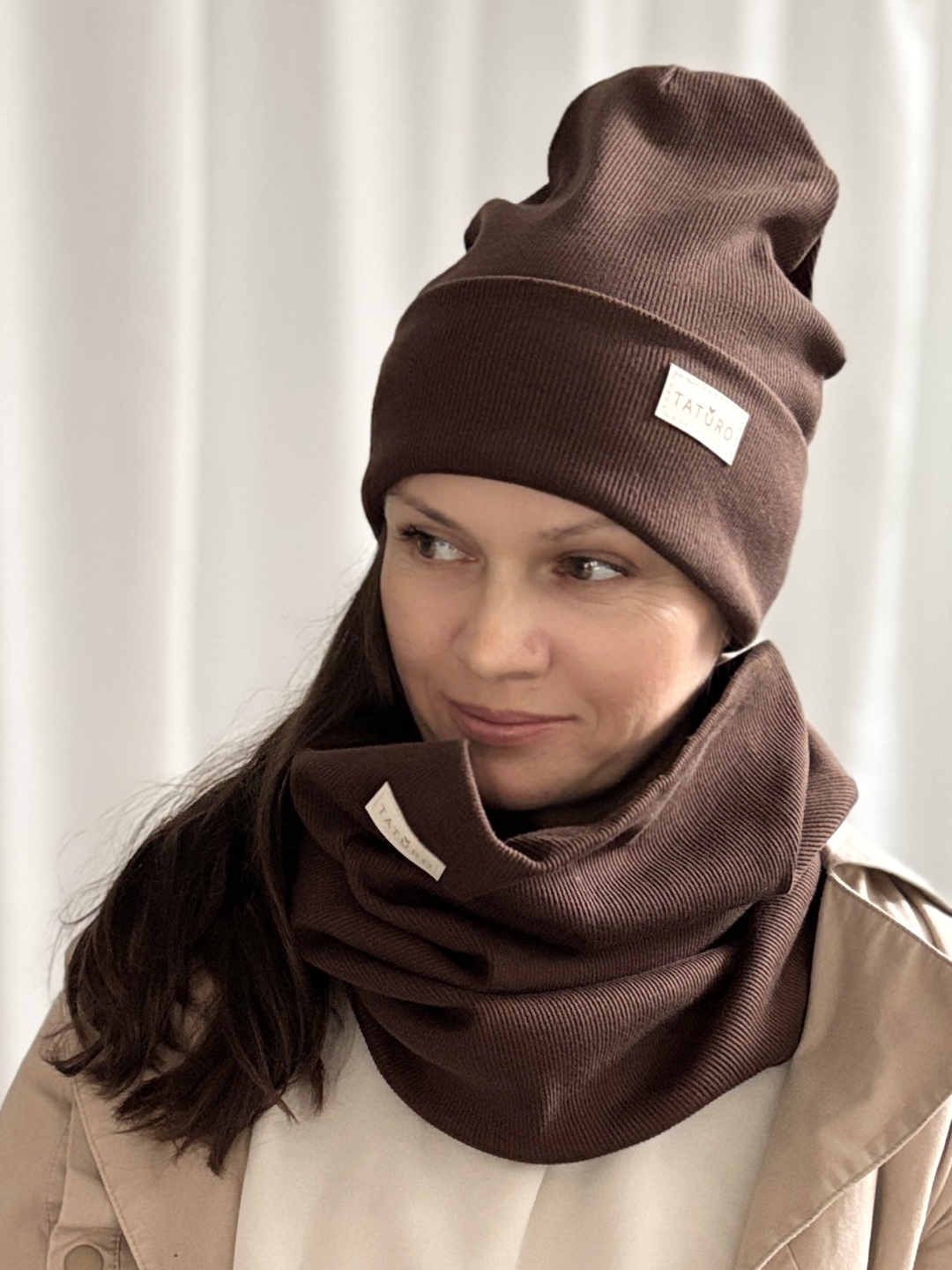 Czapka +komin damski prążkowany kakao