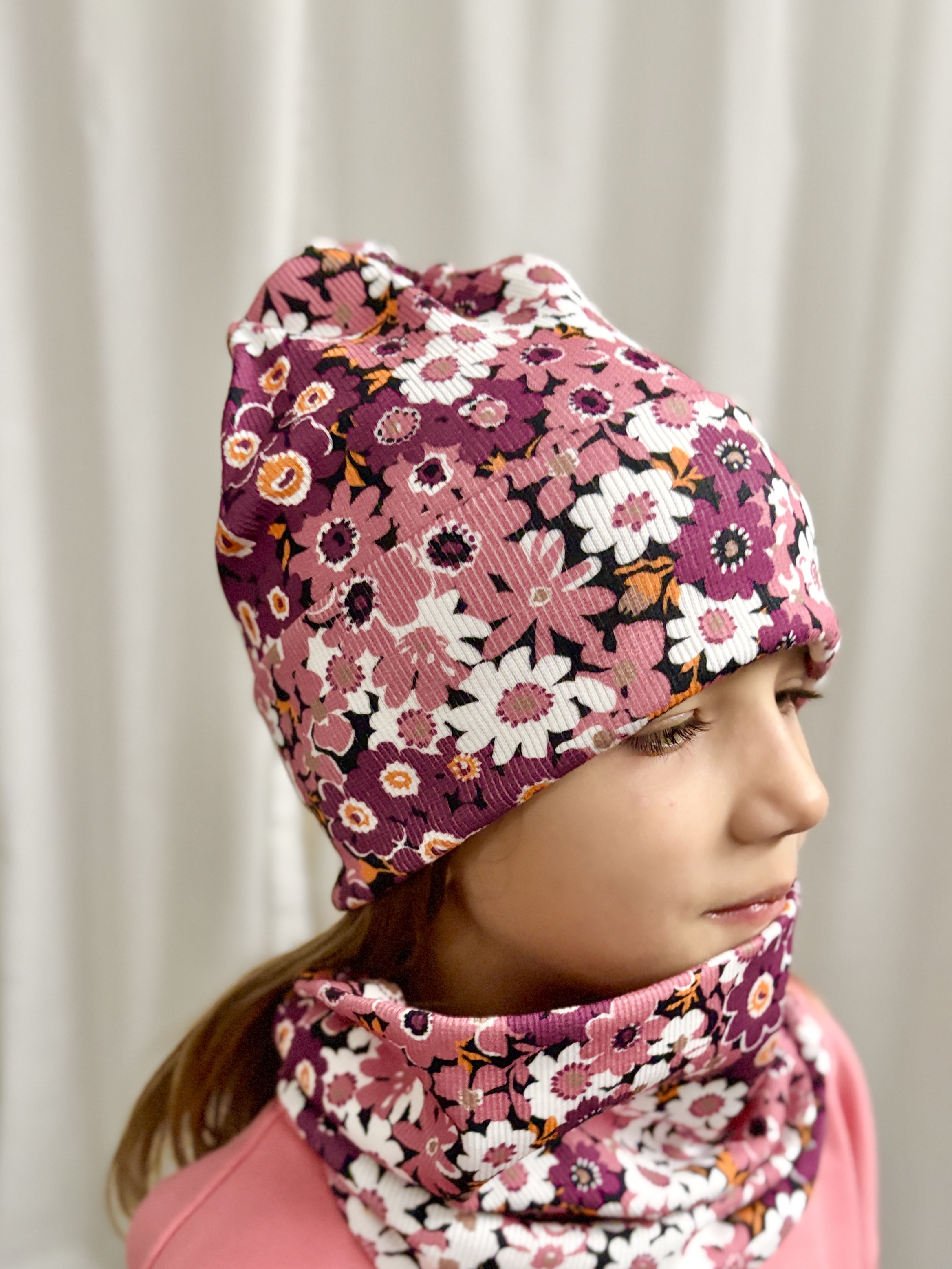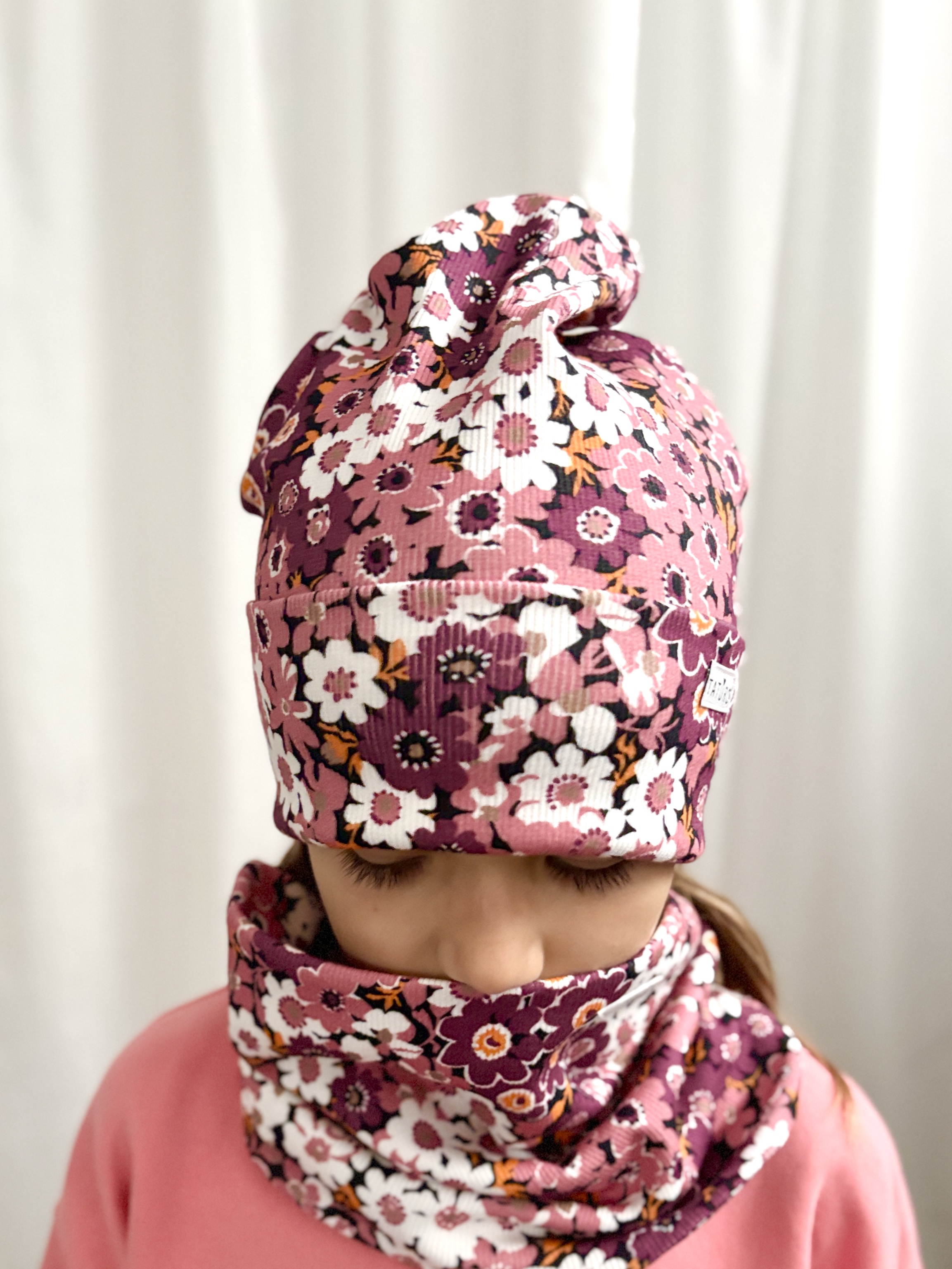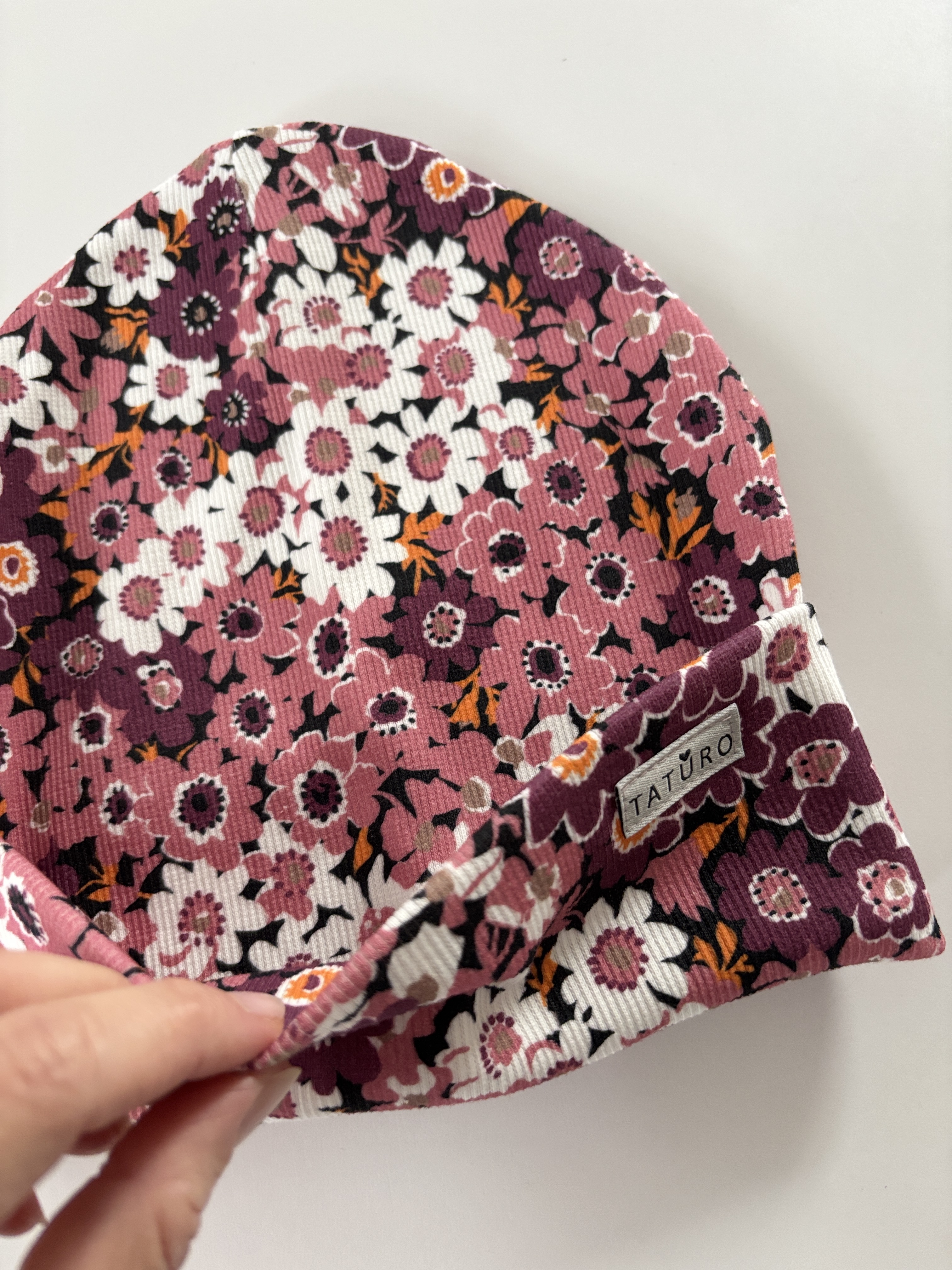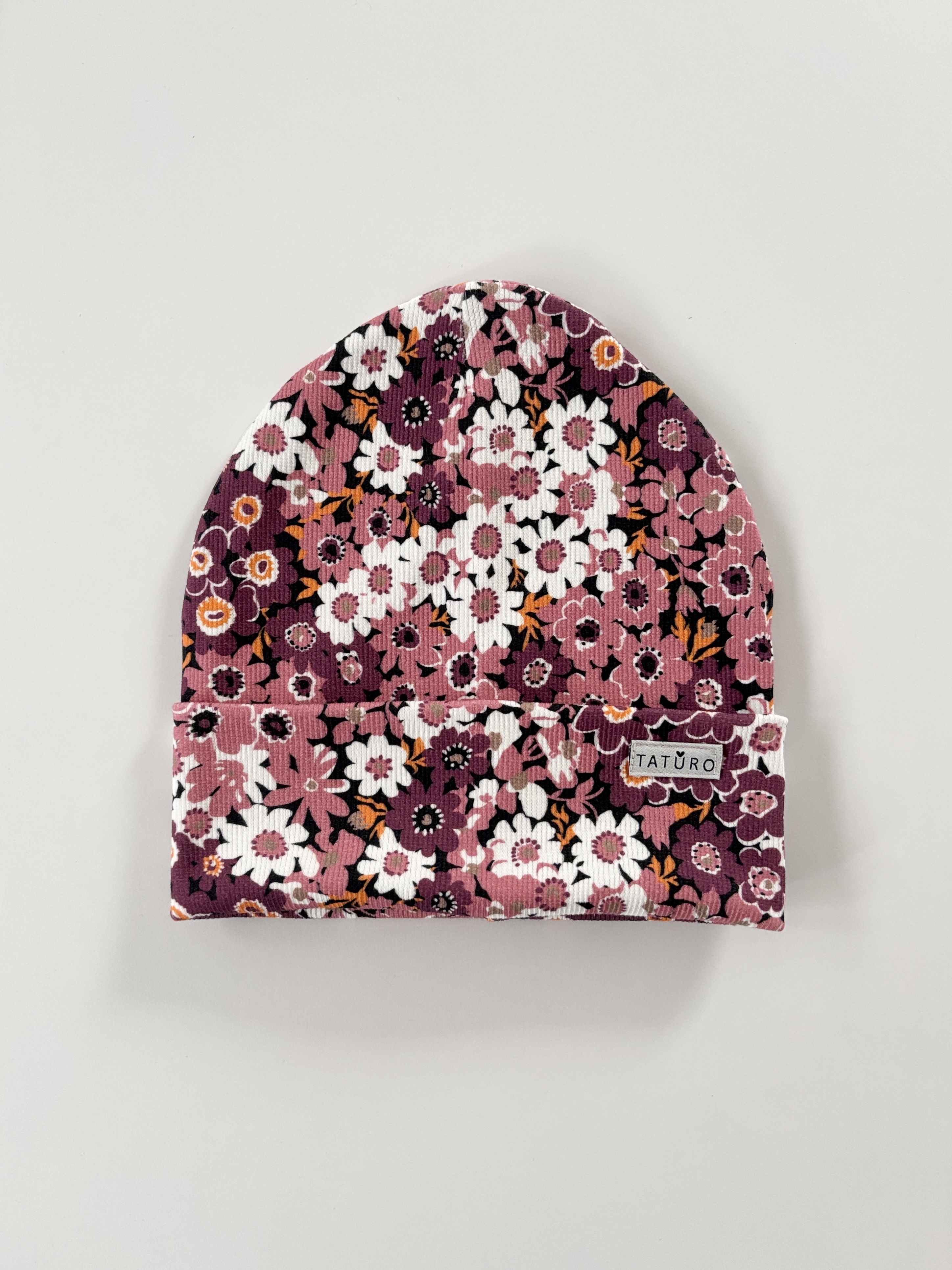 Czapka wywijana prążkowana berry floral