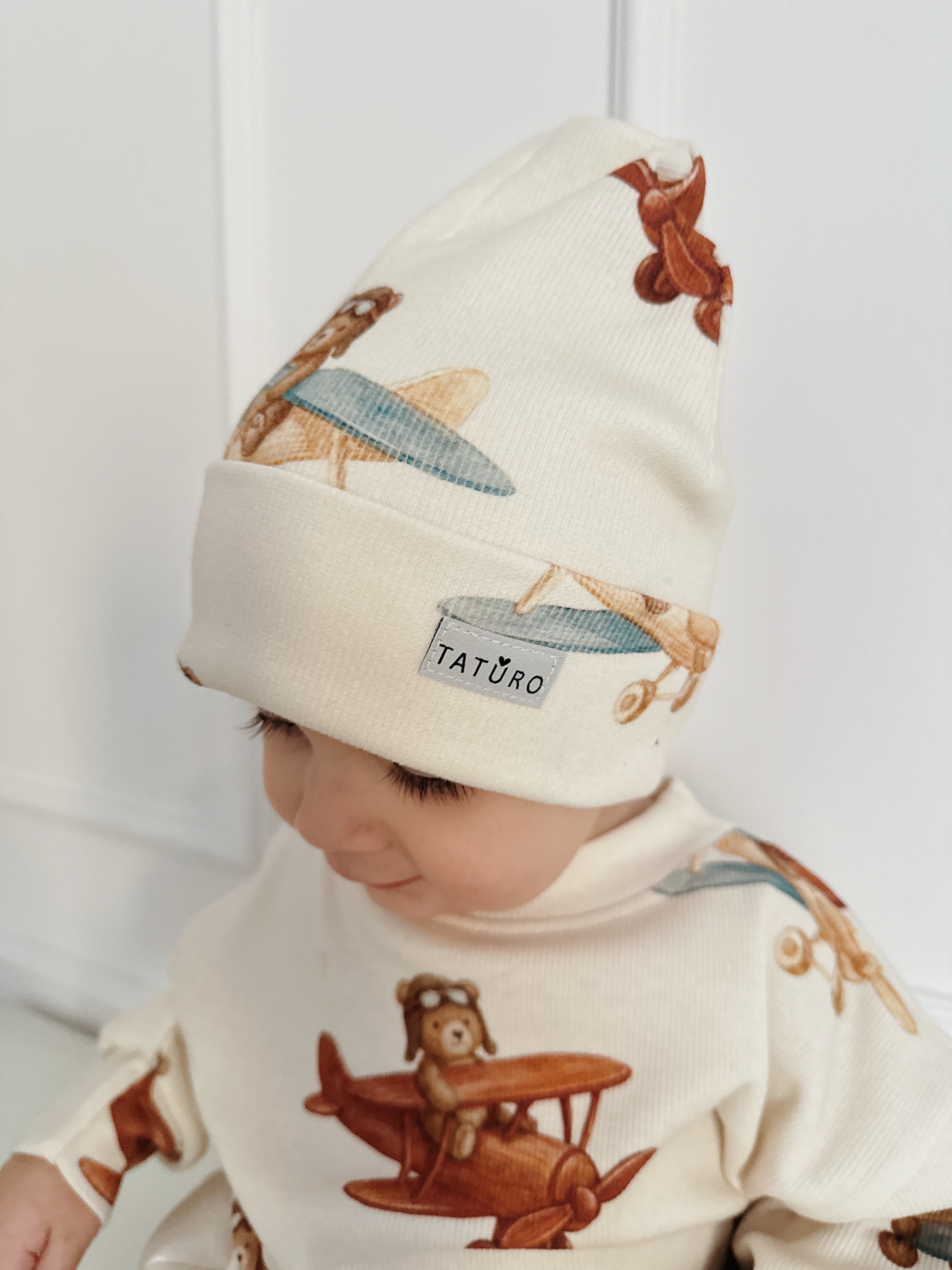 • czapka wykonana z prążkowanej dzianiny premium , wysokiej jakości i delikatnej dla skóry dziecka,gramatura 230 idealna na jesień czy wiosnę.