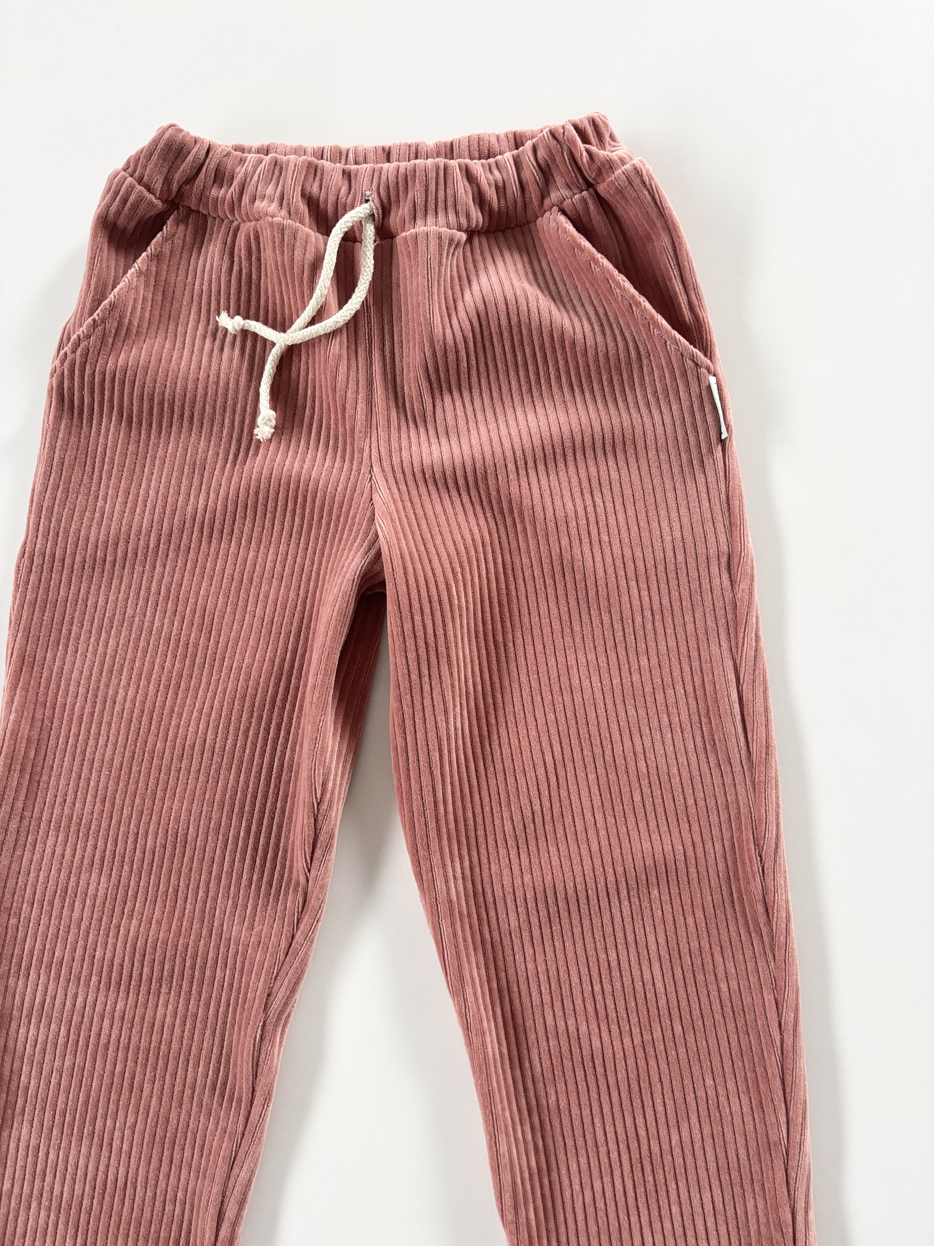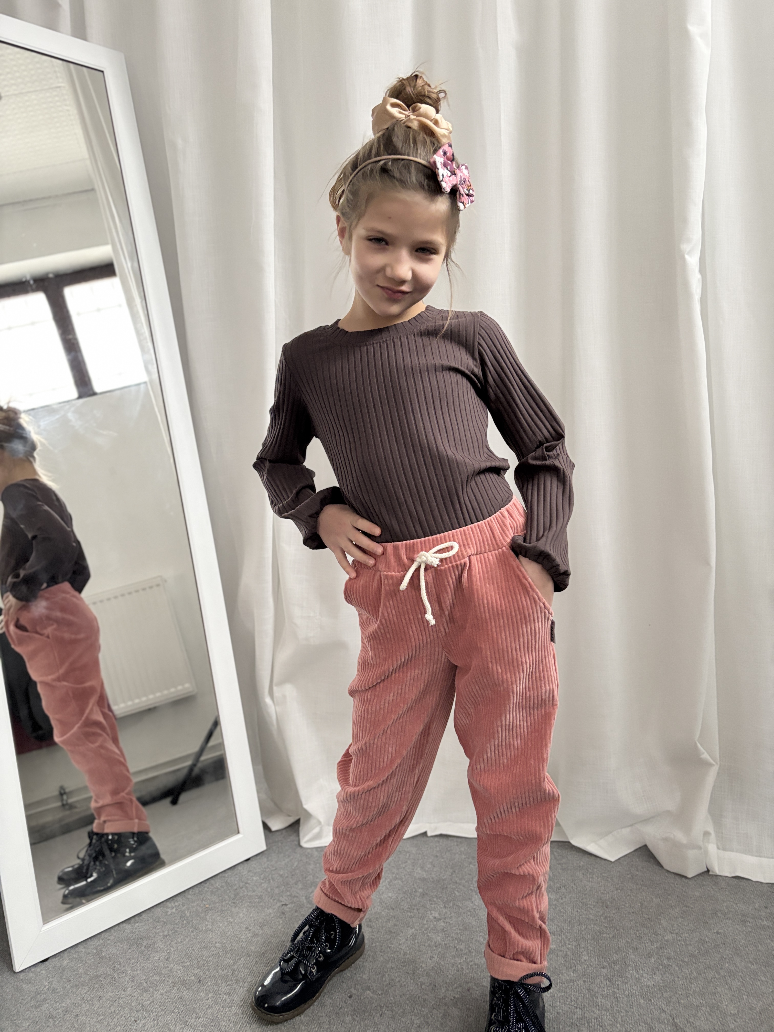 Długość całkowita spodni podana w tabeli mierzona od tyłu pasa do końca nogawki. Szelki regulowane.