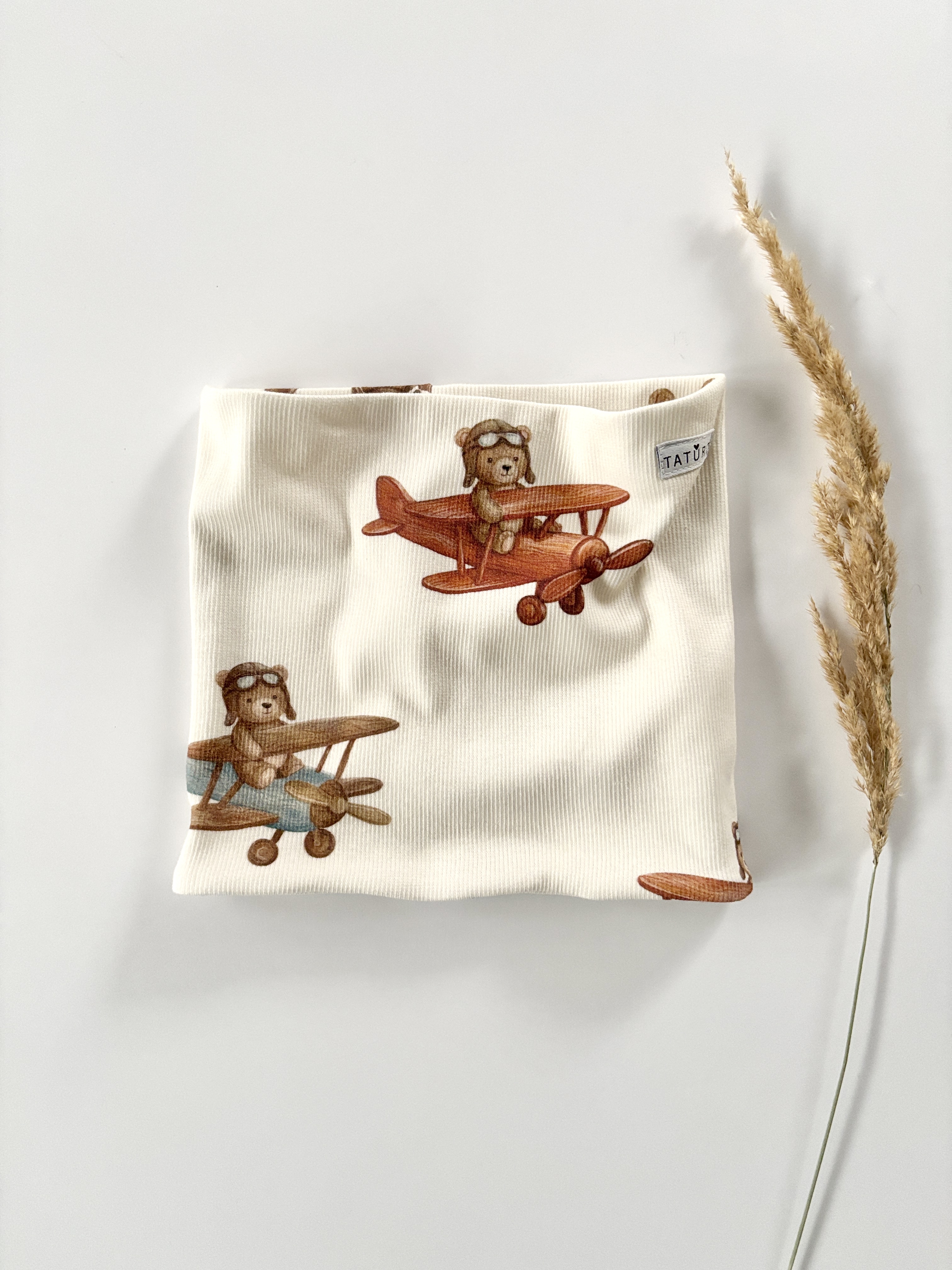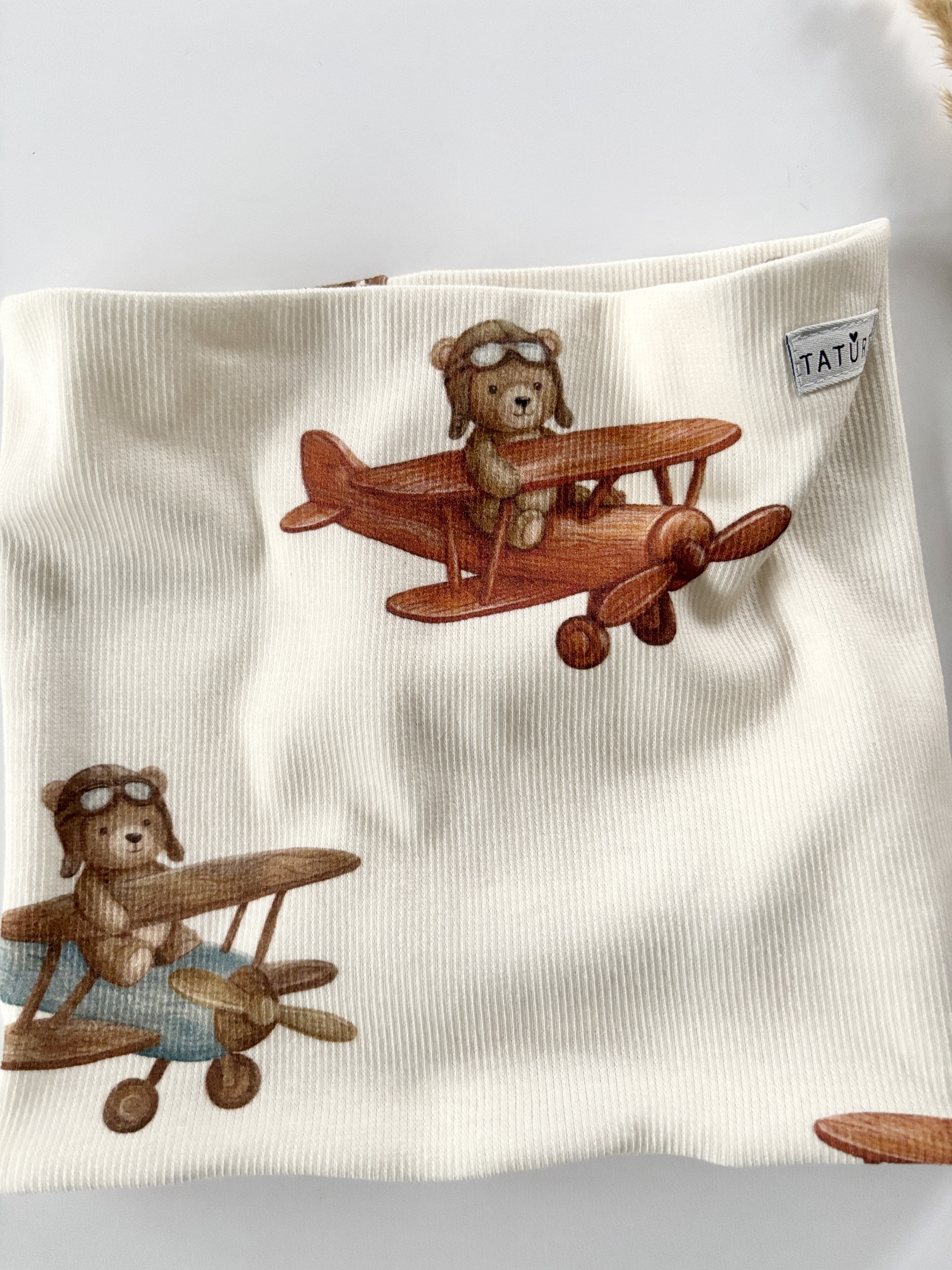 Komplet  bluza prążkowana odlotowe misie +spodnie z kieszonkami dusty blue