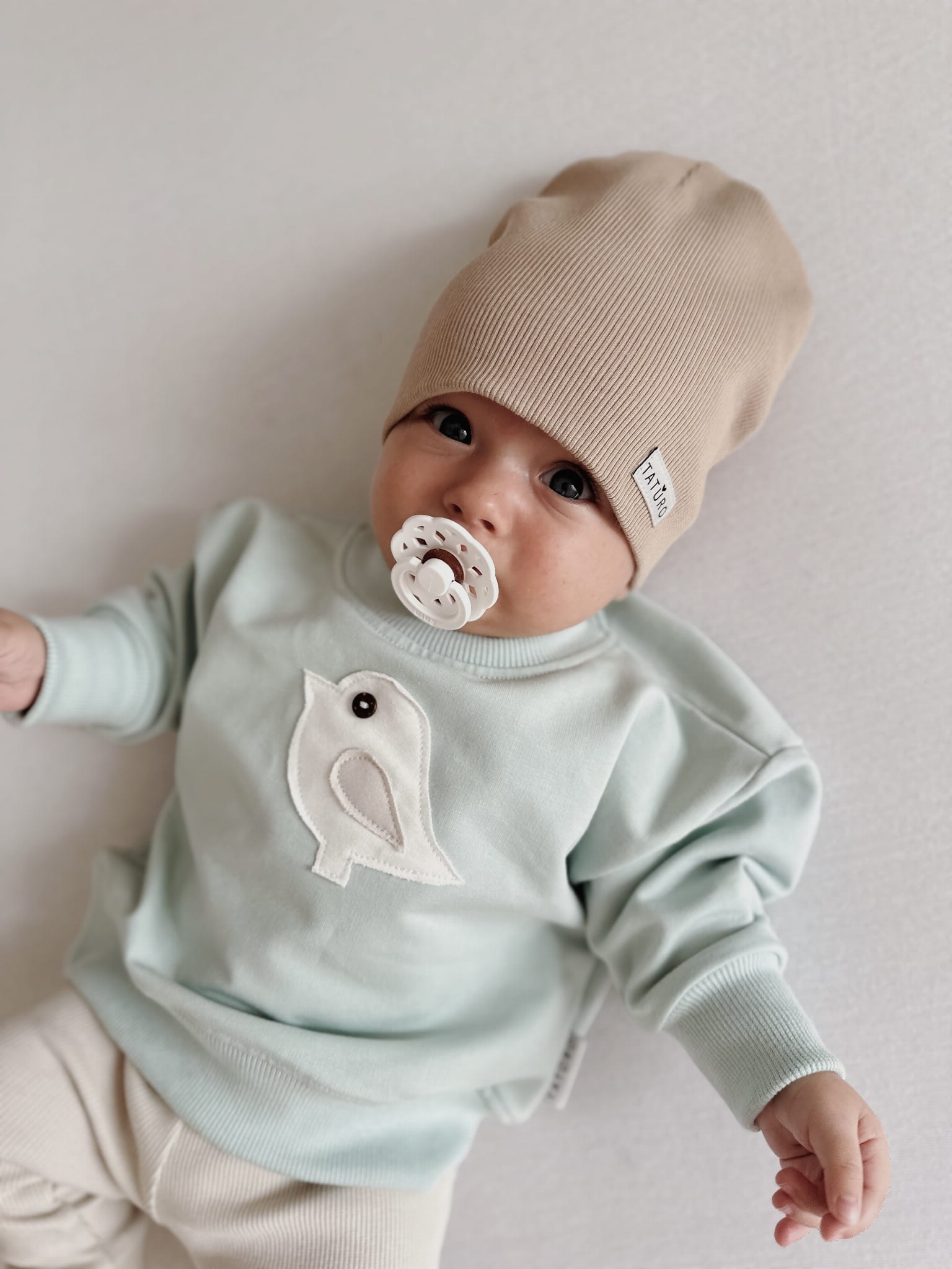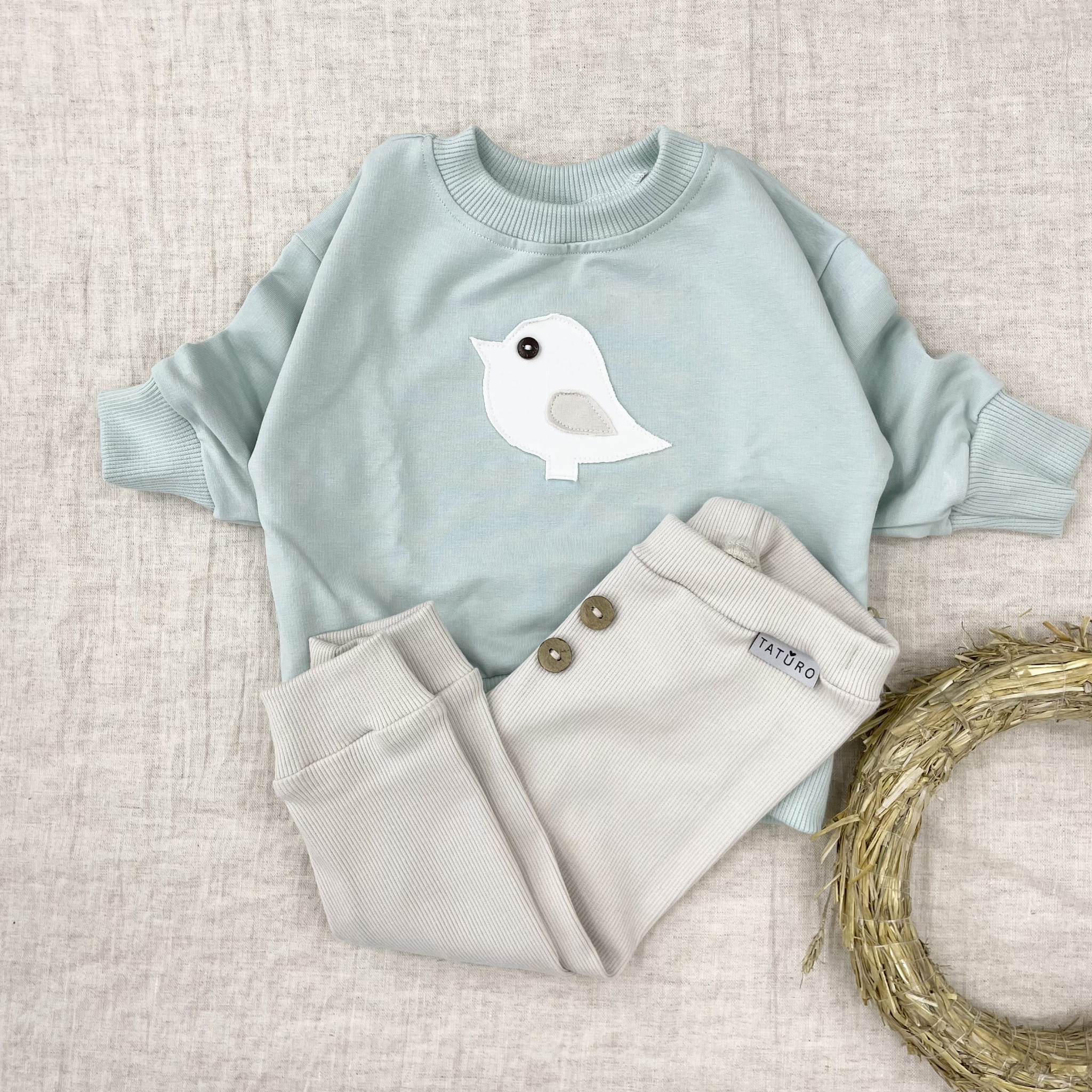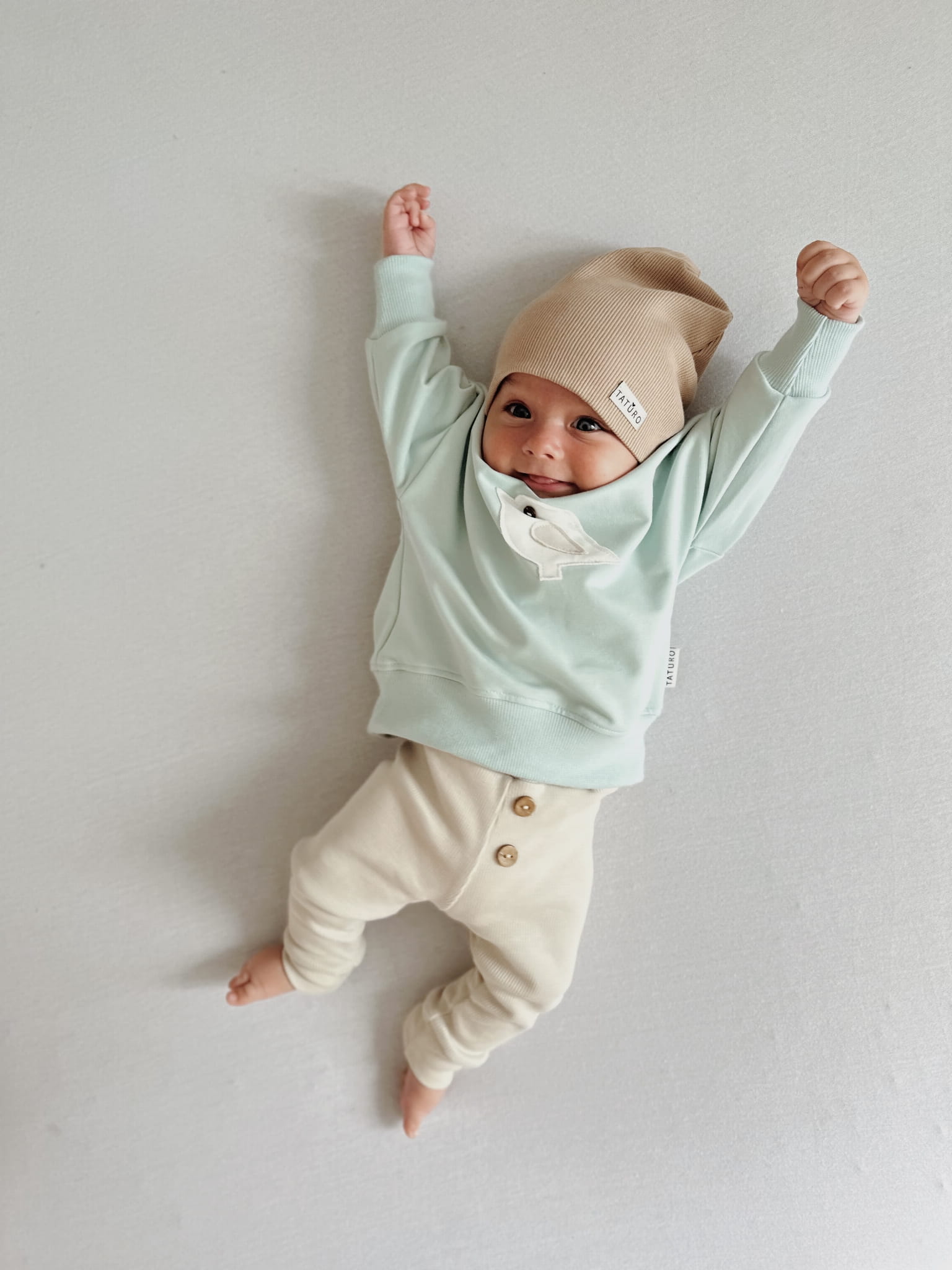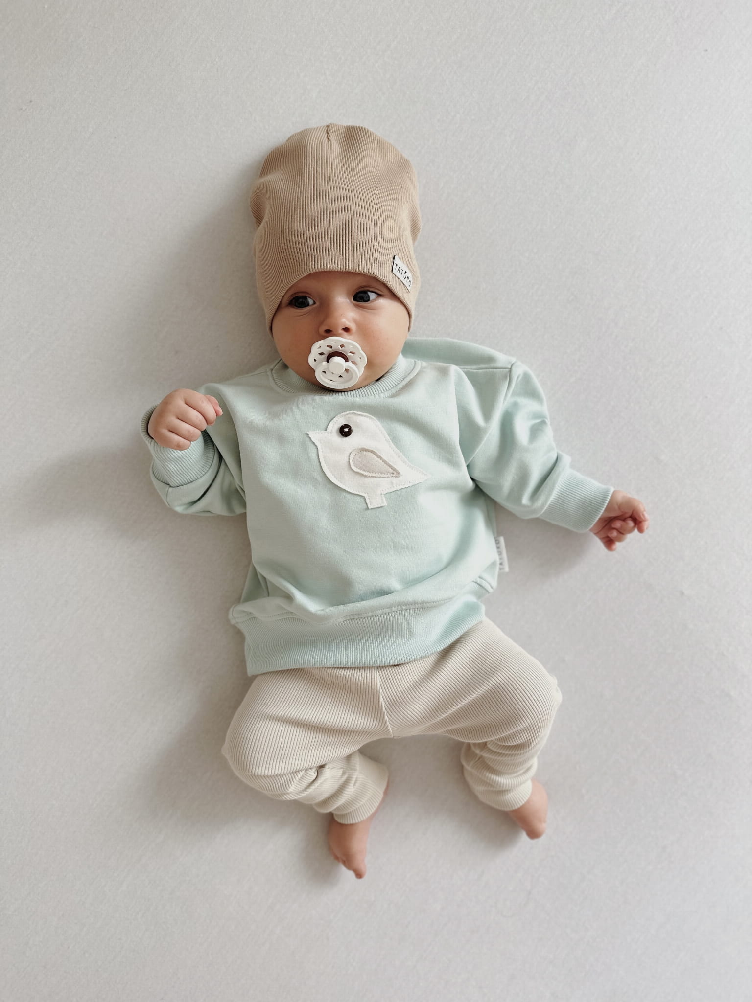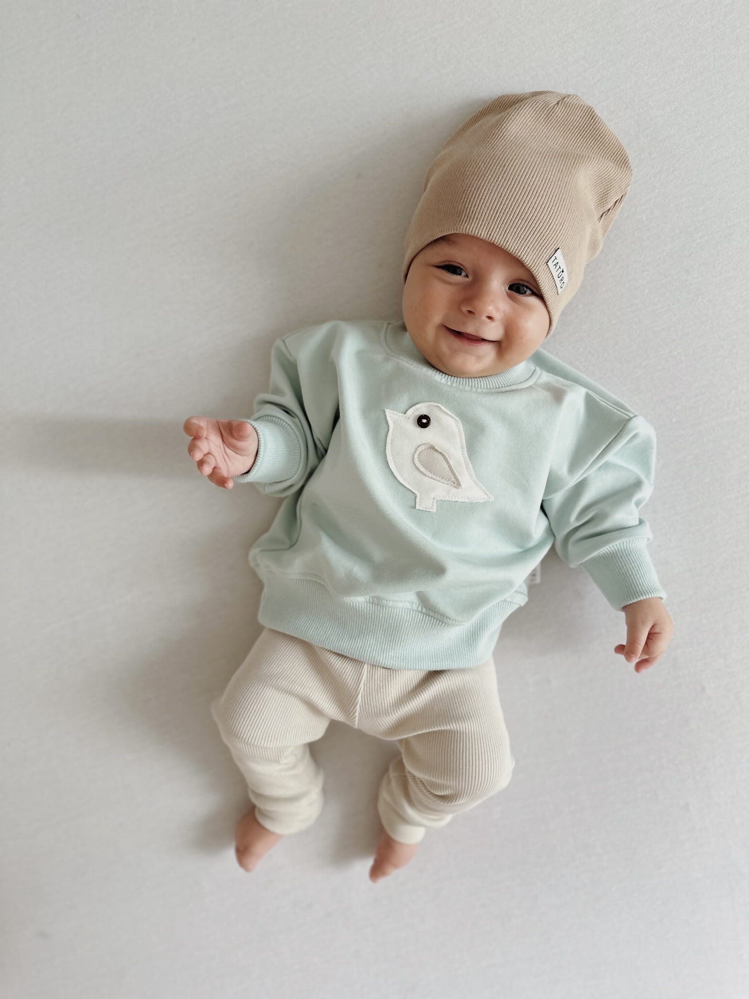 Komplet bluza miętowa bird+legginsy prążkowane classic beżowe