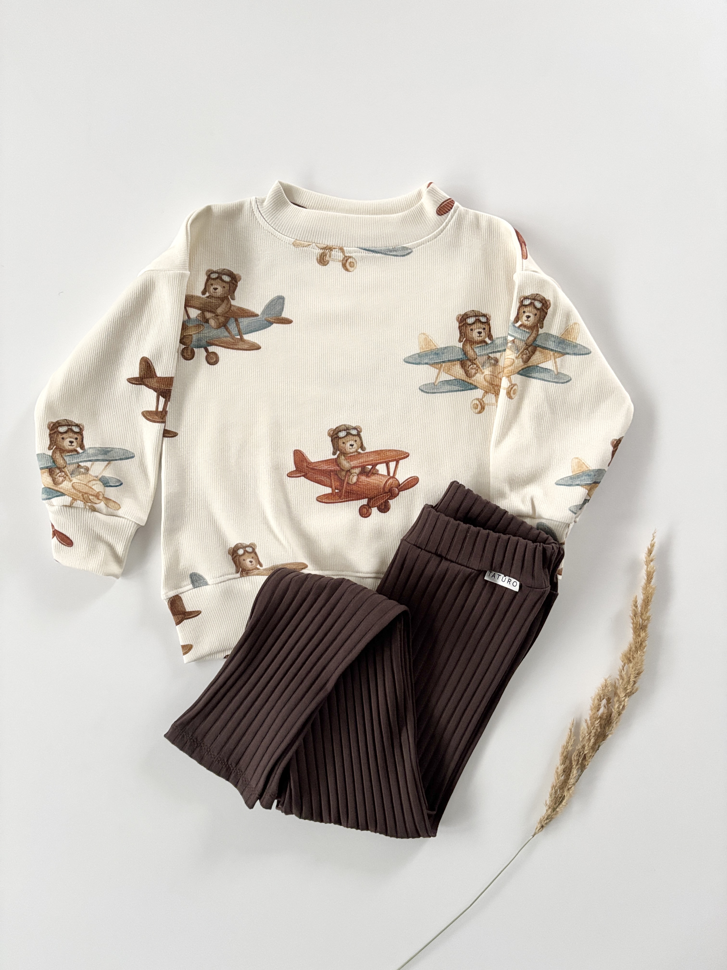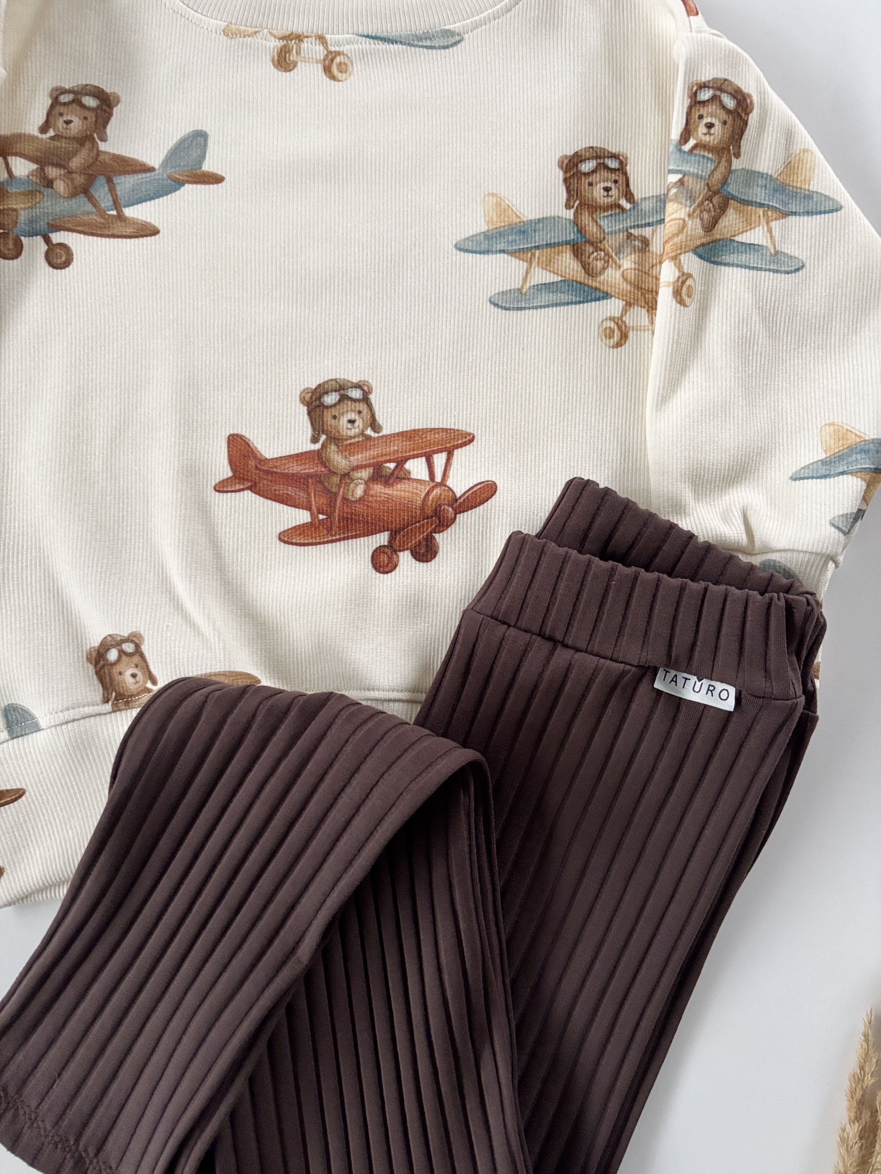 - kolor bluza prążkowana w misie w samolotach , legginsy w szeroki prążek ciemna czekolada (ustawienia monitora mogą powodować różnice w odcieniu),