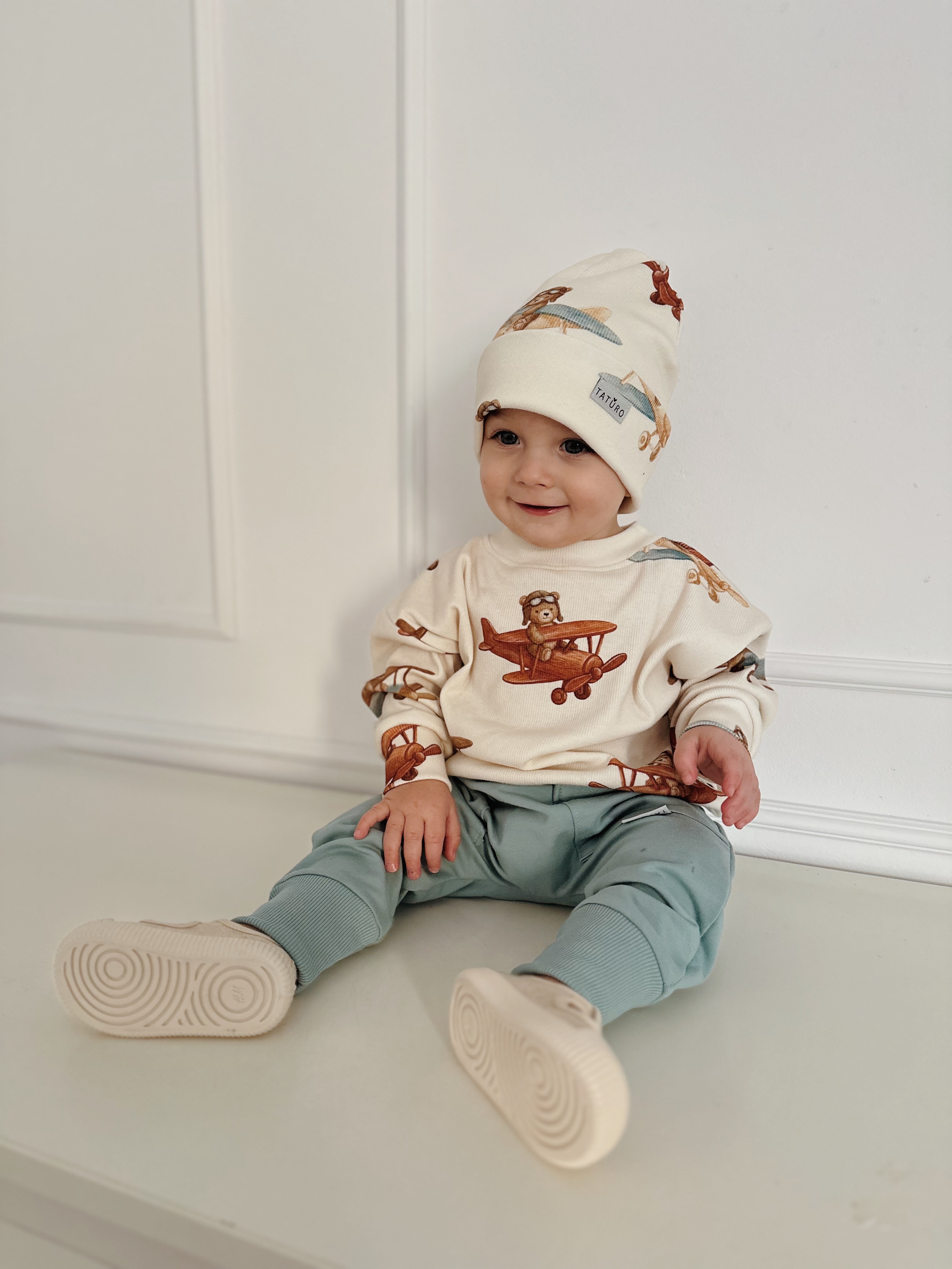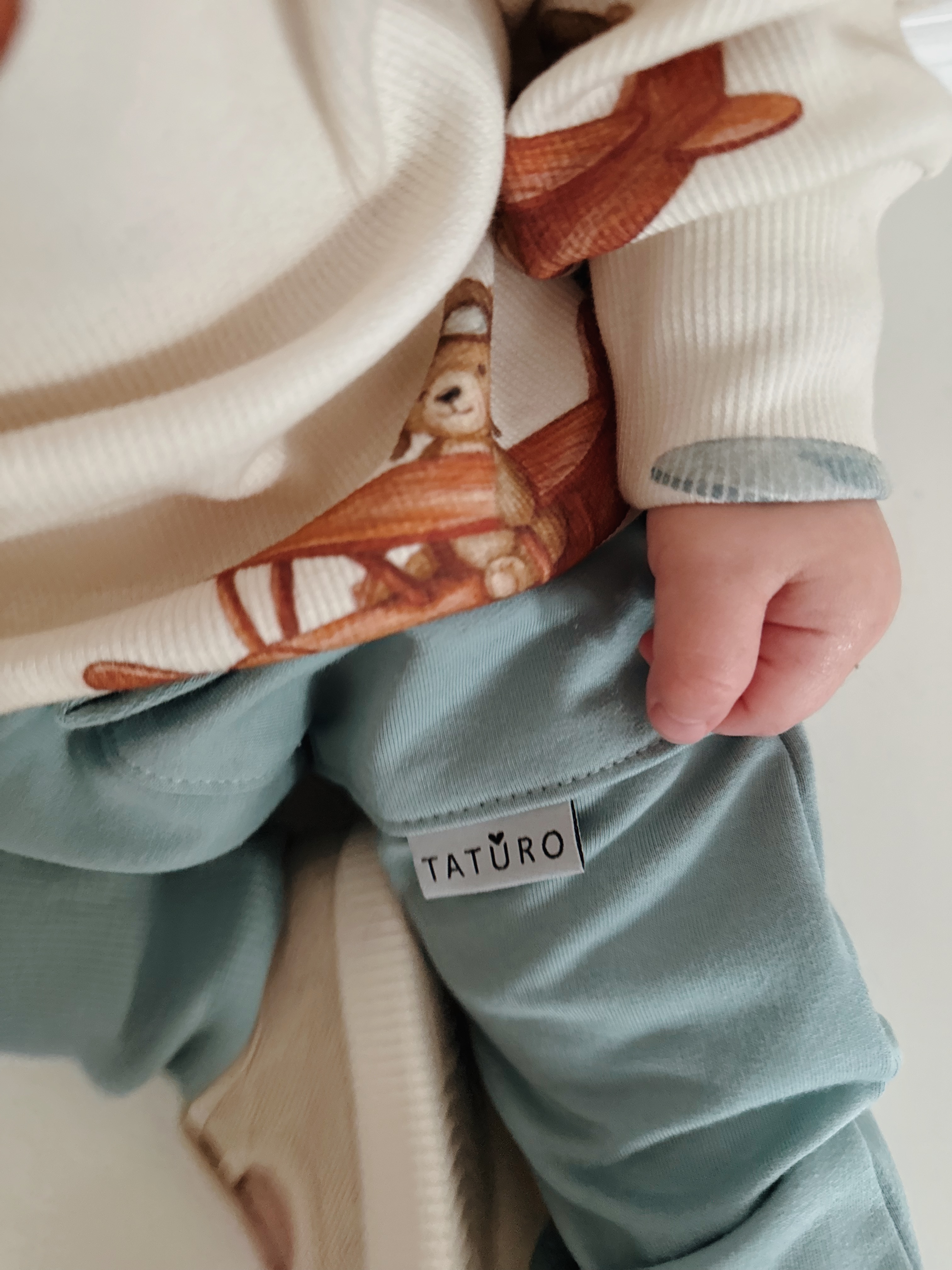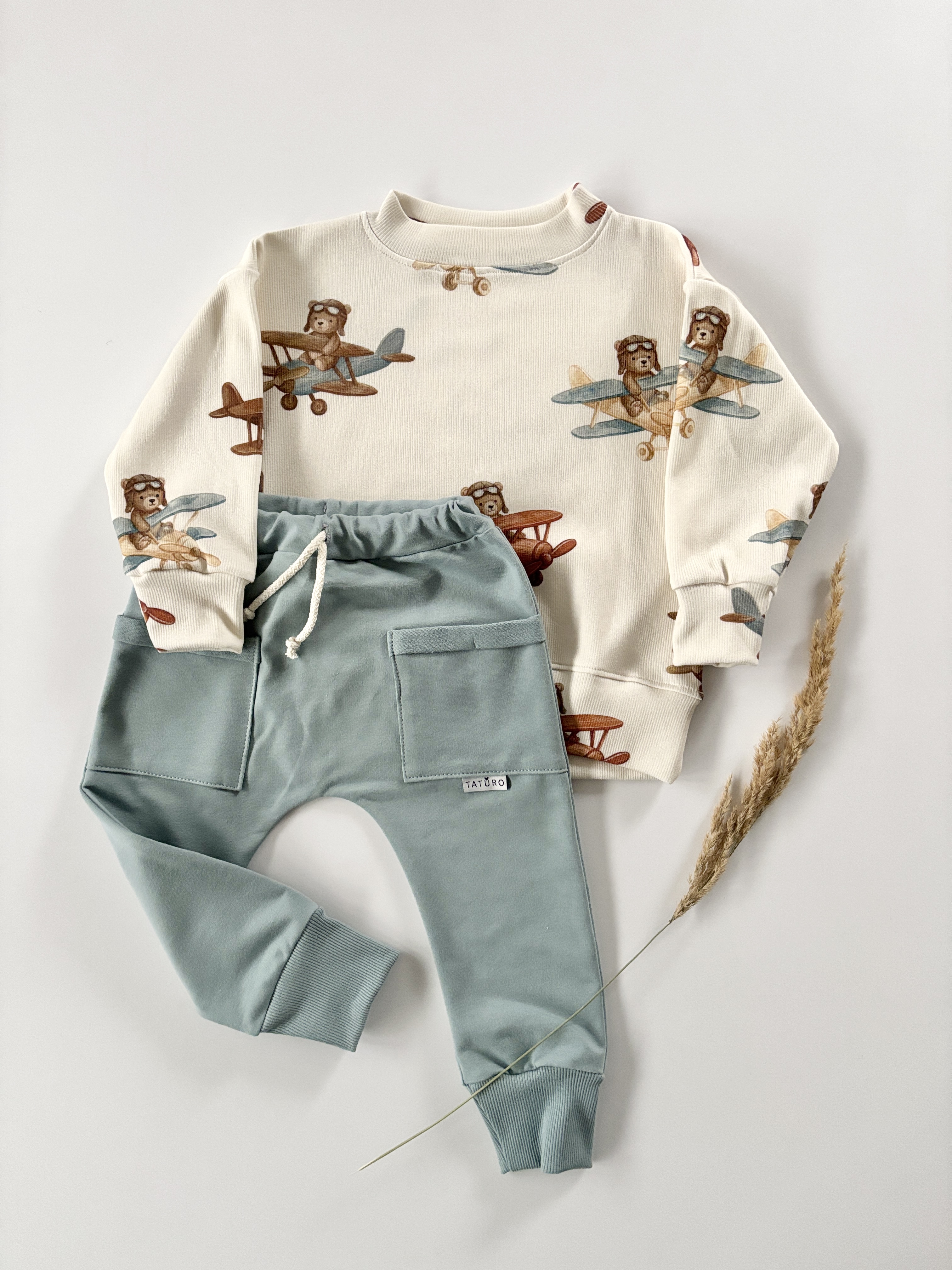 Komplet bluza prążkowana odlotowe misie +spodnie z kieszonkami dusty blue
