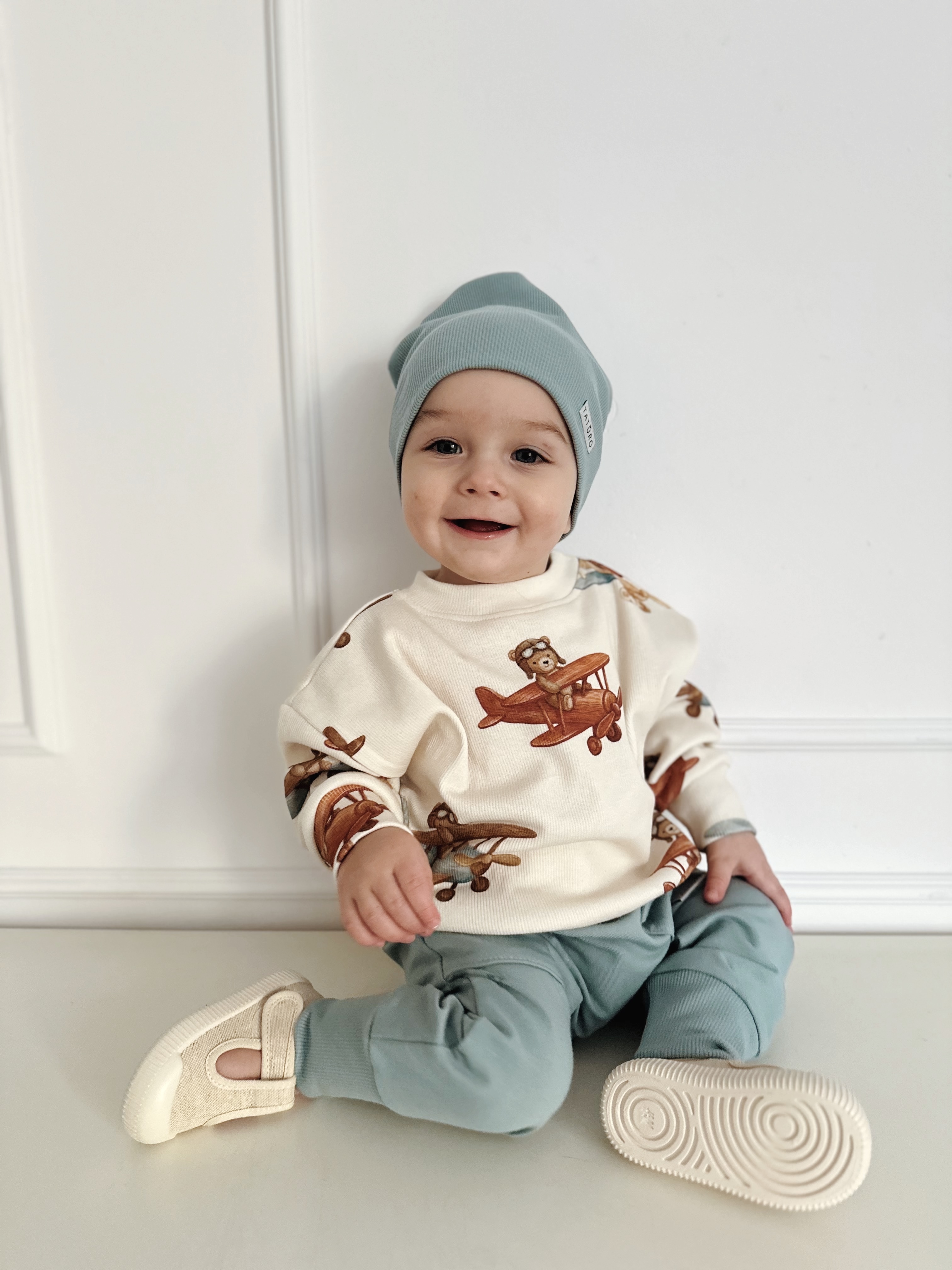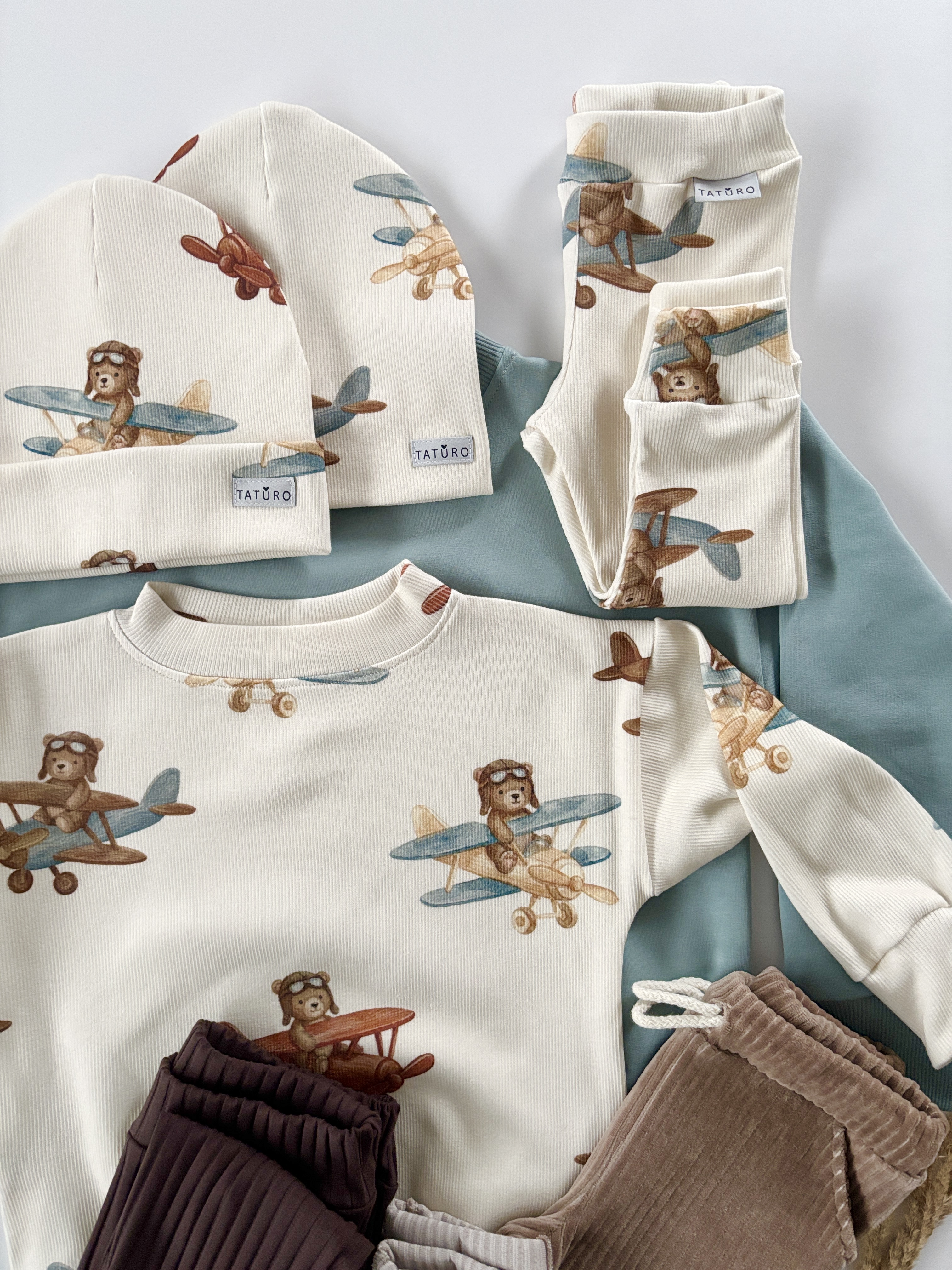 - kolor bluza prążkowana w samoloty, spodnie przygaszony niebieski (ustawienia monitora mogą powodować różnice w odcieniu),