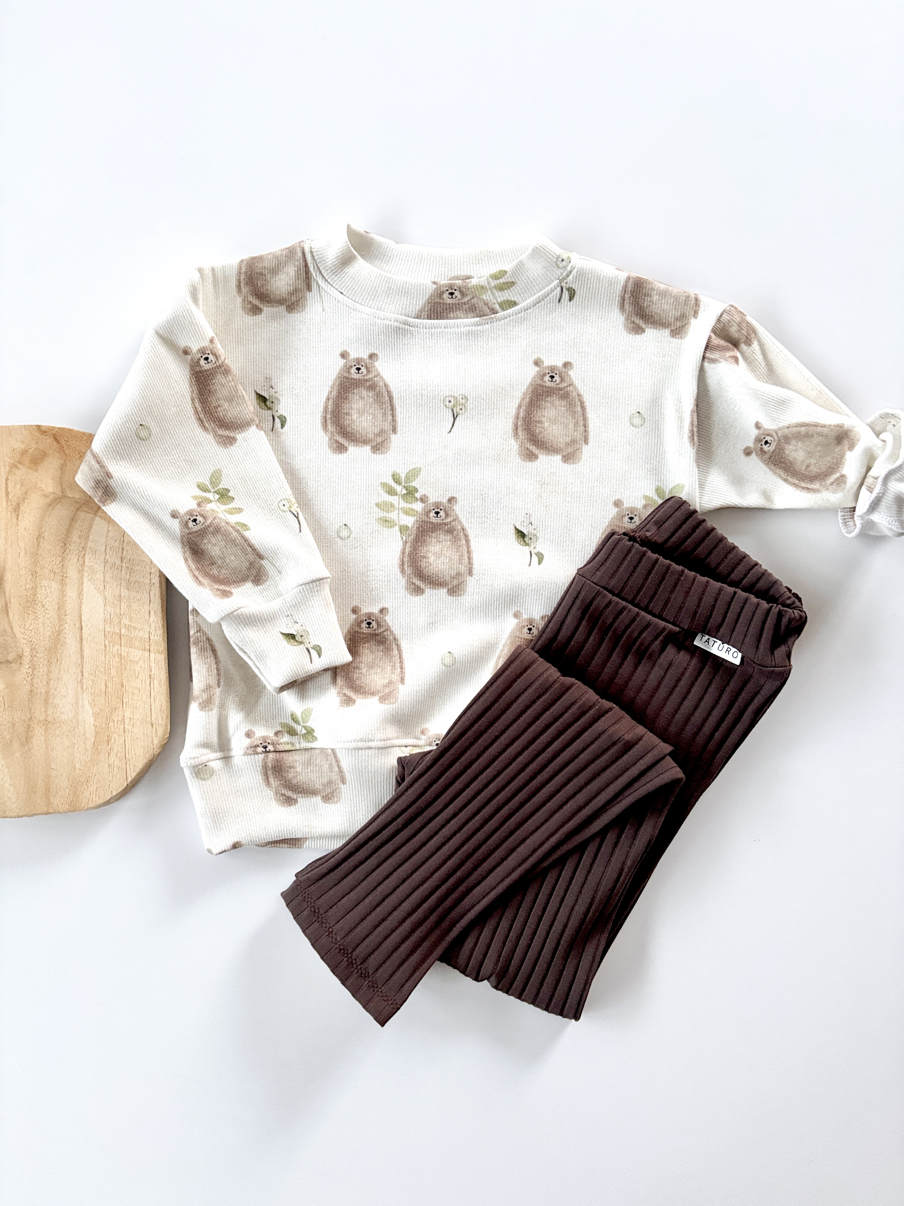 Komplet bluza sweet bear beżowa + legginsy prążek dark chocolate