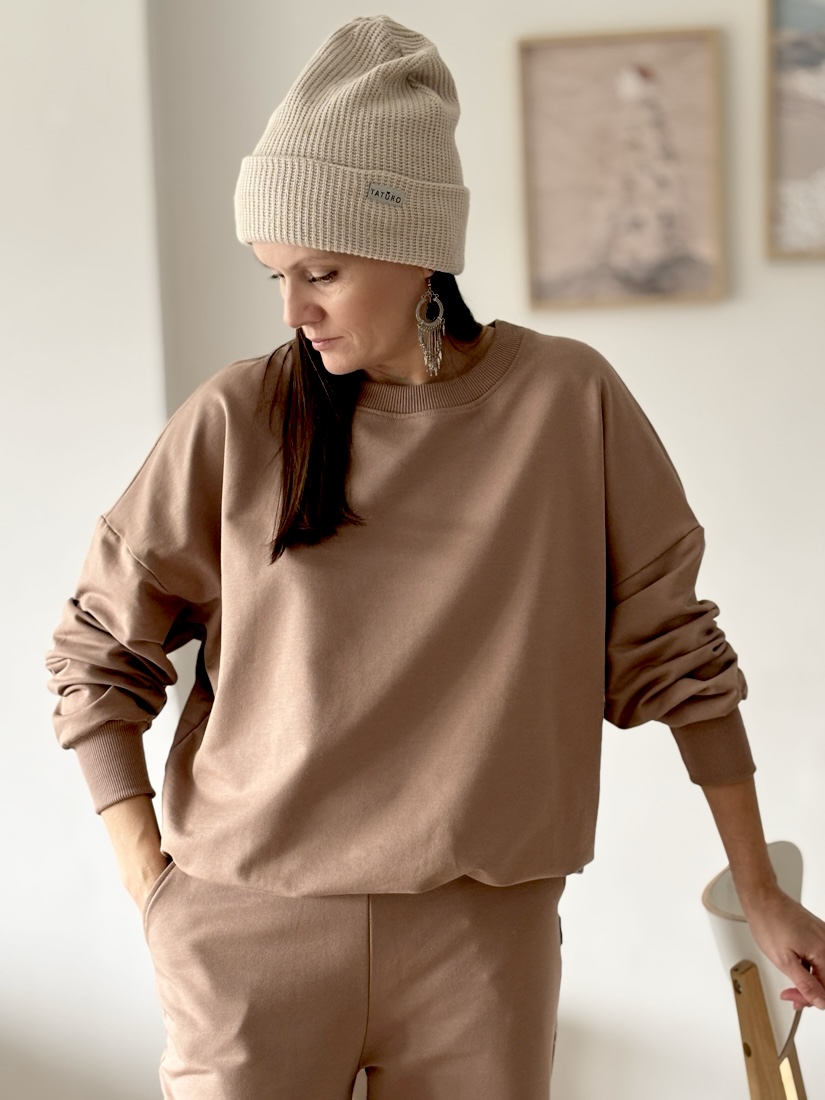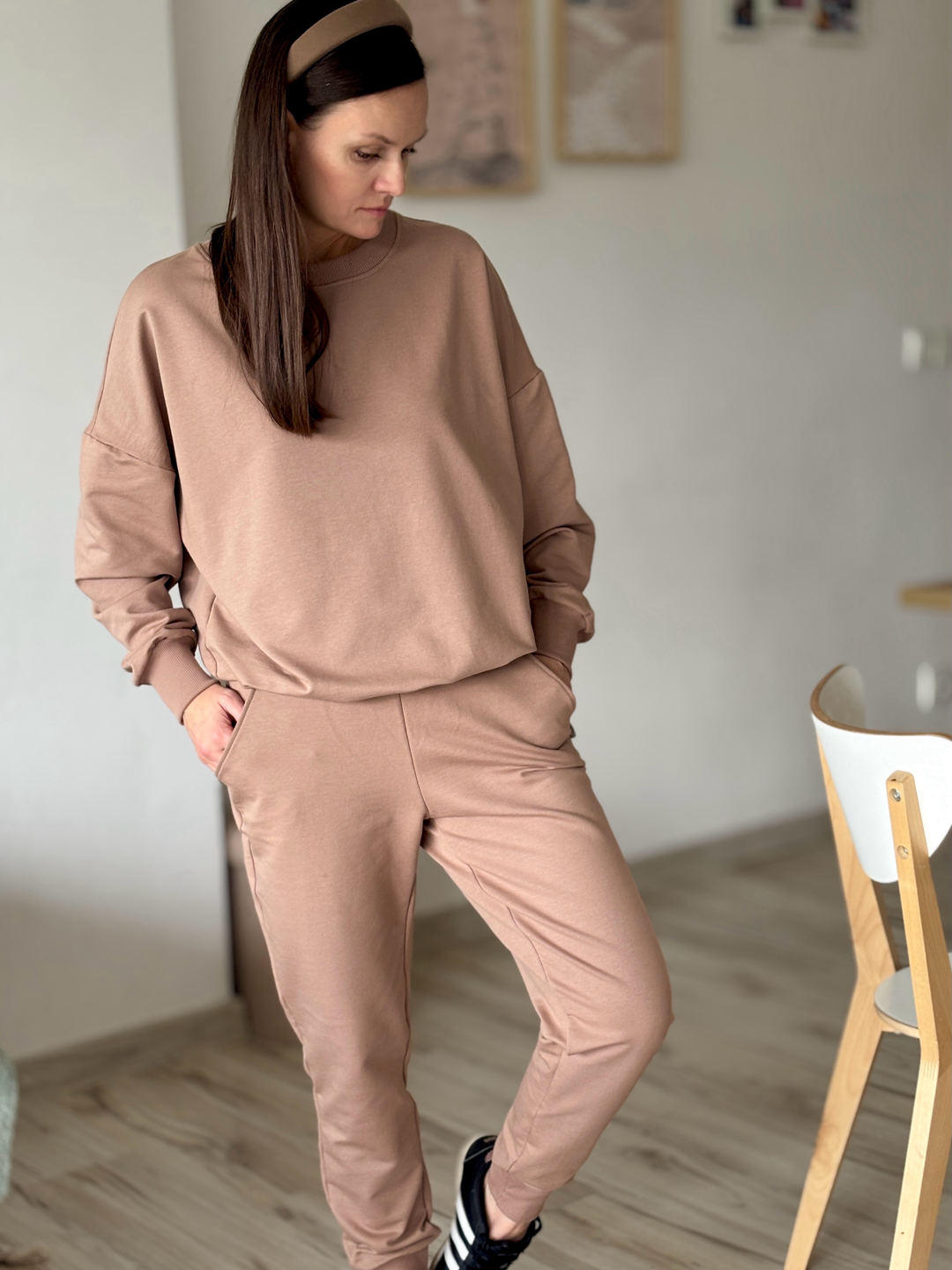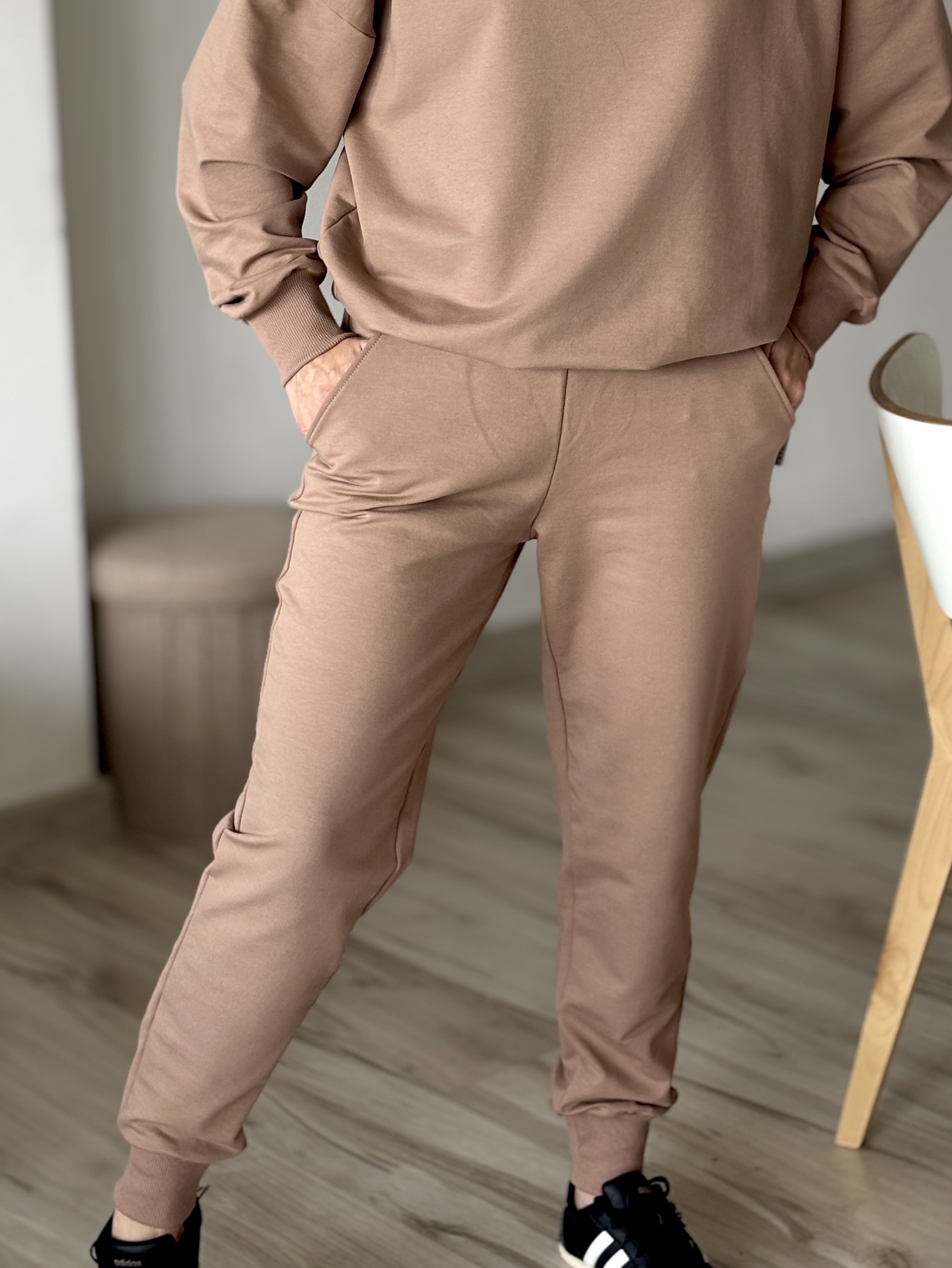 Komplet, który łączy w sobie wygodę i ponadczasowy styl. Bluza i spodnie wykonane z miękkiego, przyjemnego w dotyku materiału premium, który zapewnia komfort przez cały dzień. Uniwersalny design sprawia, że pasuje do każdej stylizacji – zarówno casualowej, jak i sportowej. Spodnie dopełniają całość, oferując idealne połączenie komfortu i klasy. Wykonane z elastycznej dzianiny, która doskonale dopasowuje się do sylwetki, te spodnie zapewniają wygodę i swobodę ruchów. Dzięki wygodnemu fasonowi, tworzą modny, lekko oversizowy efekt, a ich uniwersalny charakter sprawia, że pasują do różnych okazji. Kompletny zestaw, który jest łatwy w pielęgnacji, trwały i perfekcyjnie łączy luz z elegancją, idealny do noszenia samodzielnie lub w połączeniu z dodatkami.