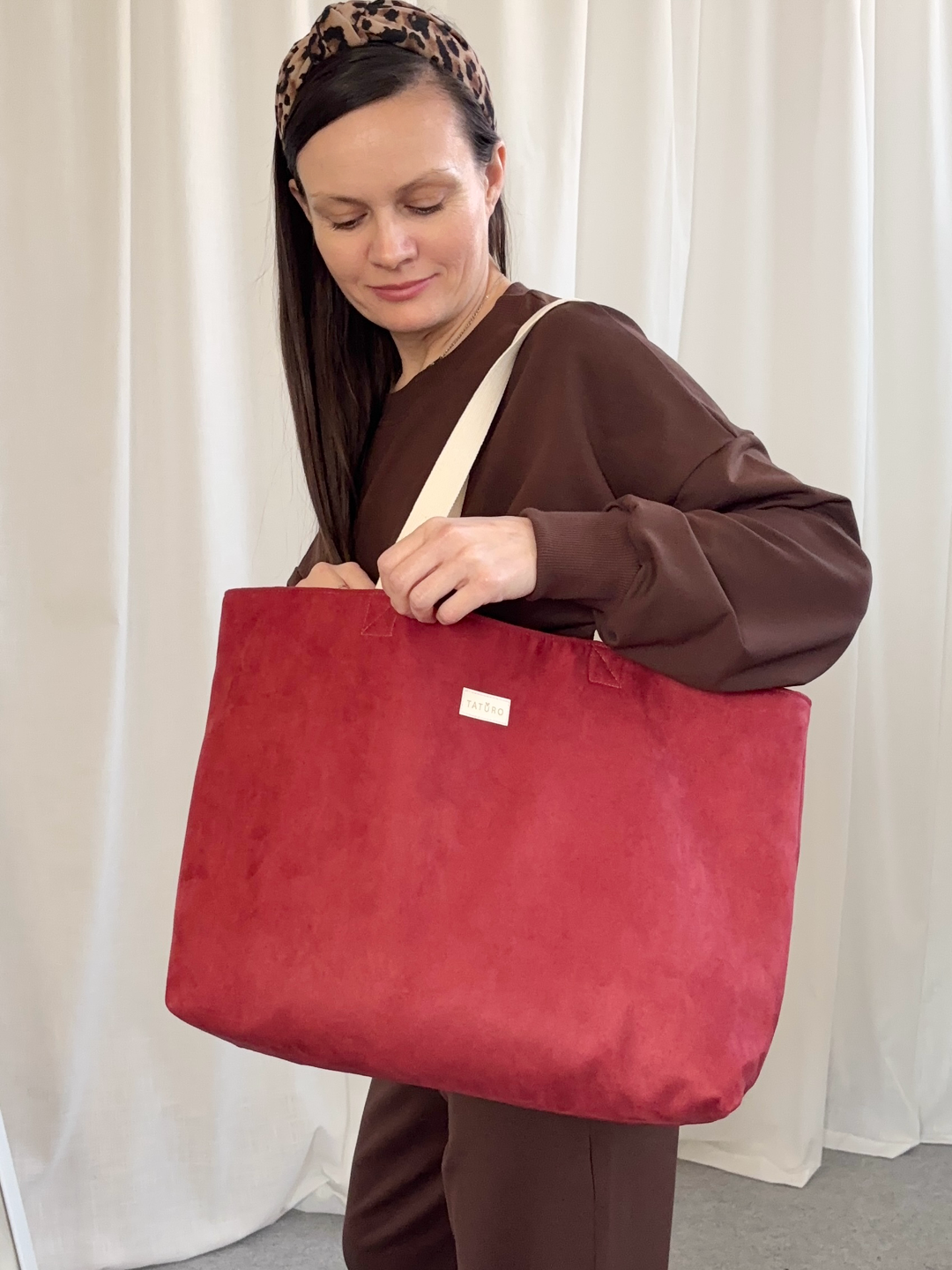 OPIS: shopperka eko-zamsz kolor w odcieniu czerwieni, piękna łagodna ale głęboka czerwień.