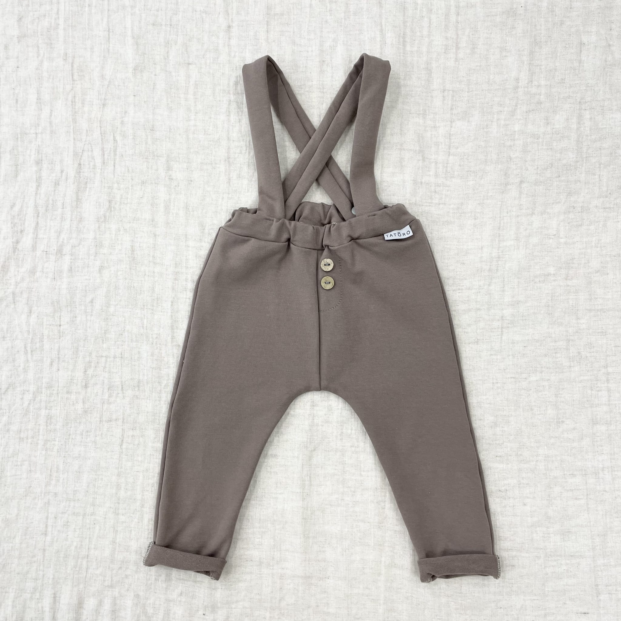 Długość całkowita spodni podana w tabeli mierzona od tyłu pasa do końca nogawki.Szelki regulowane.