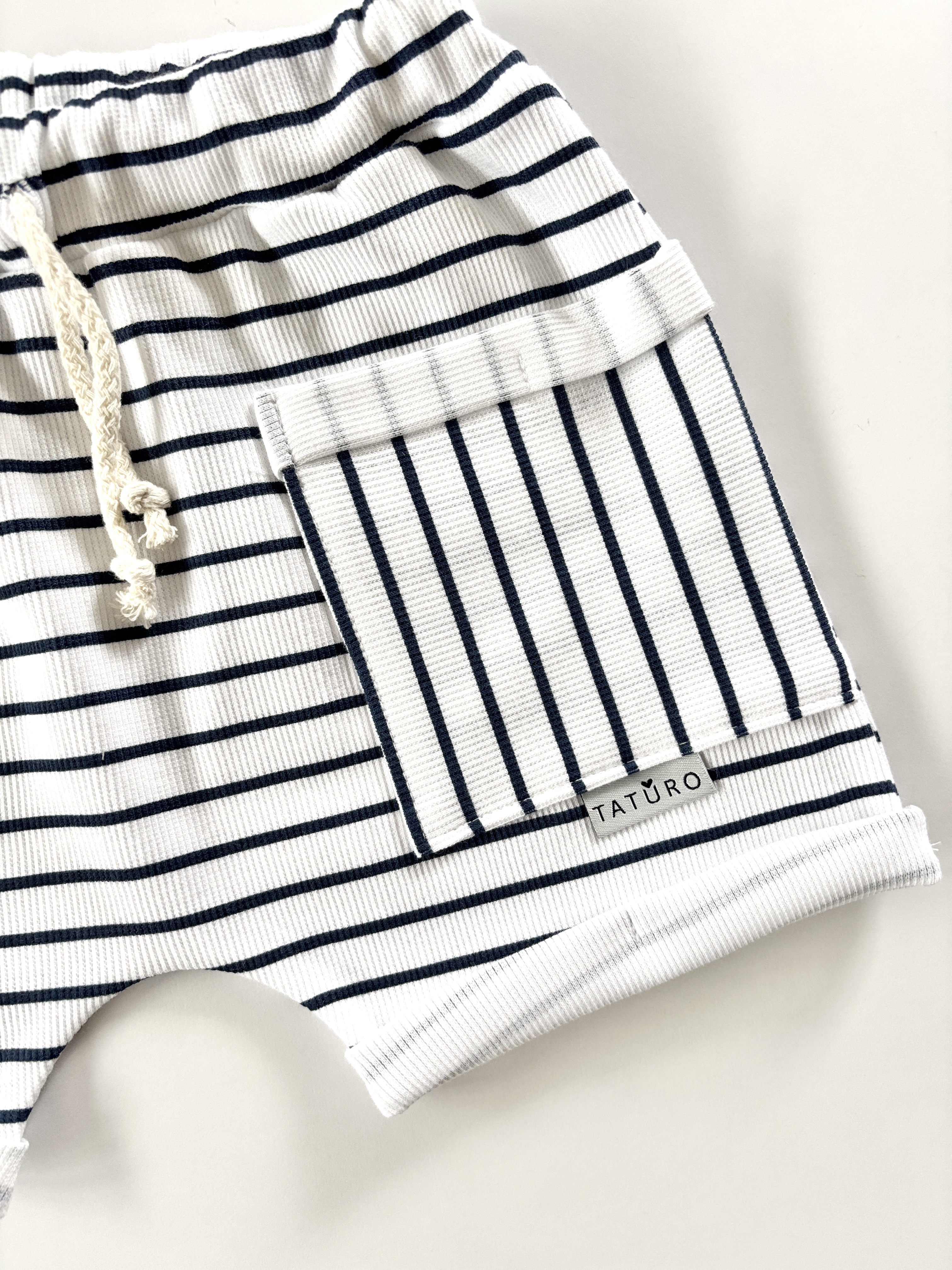 Szorty z kieszonkami prążkowane strips navy