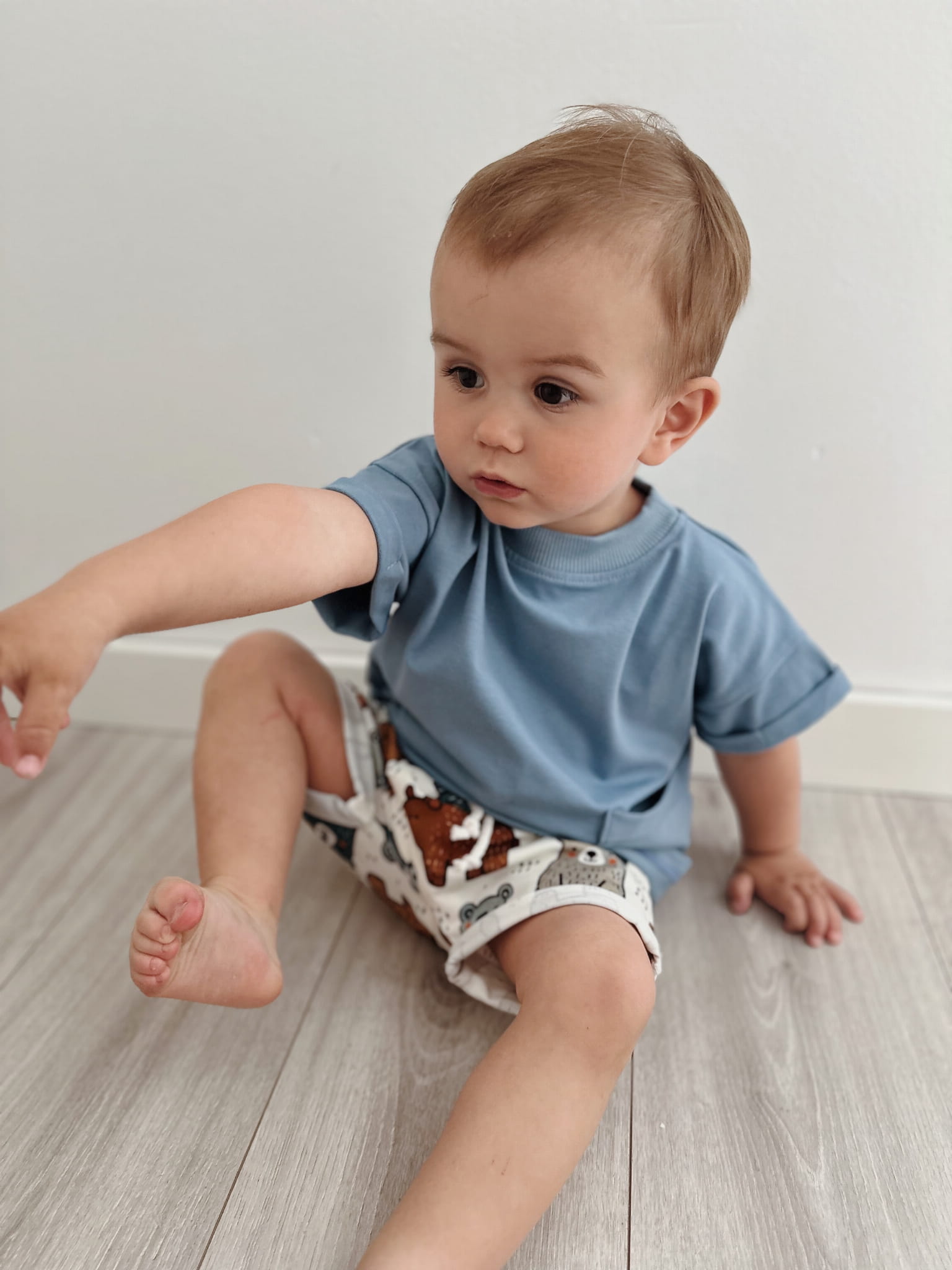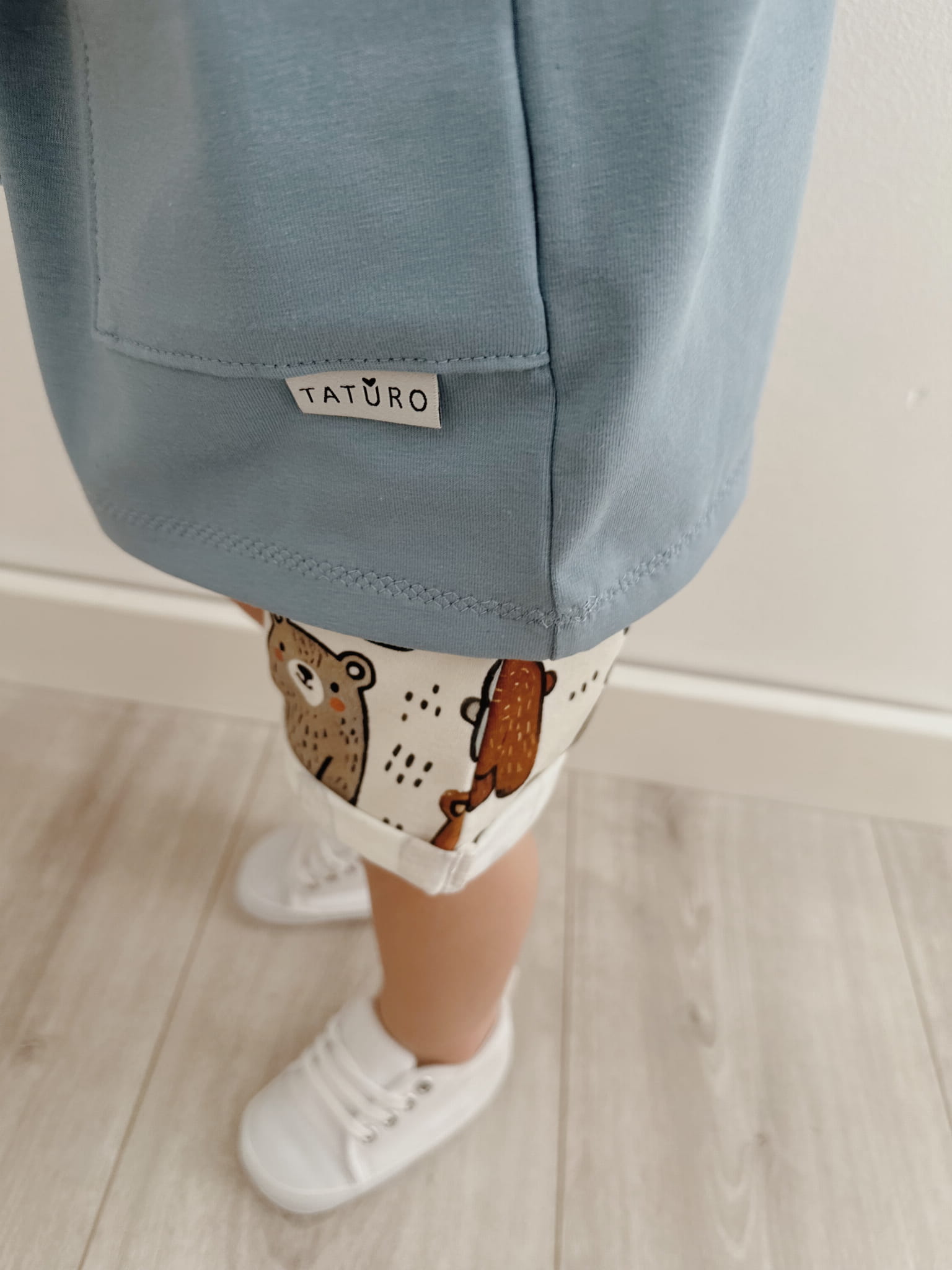 Komplet  bluza prążkowana odlotowe misie +spodnie z kieszonkami dusty blue